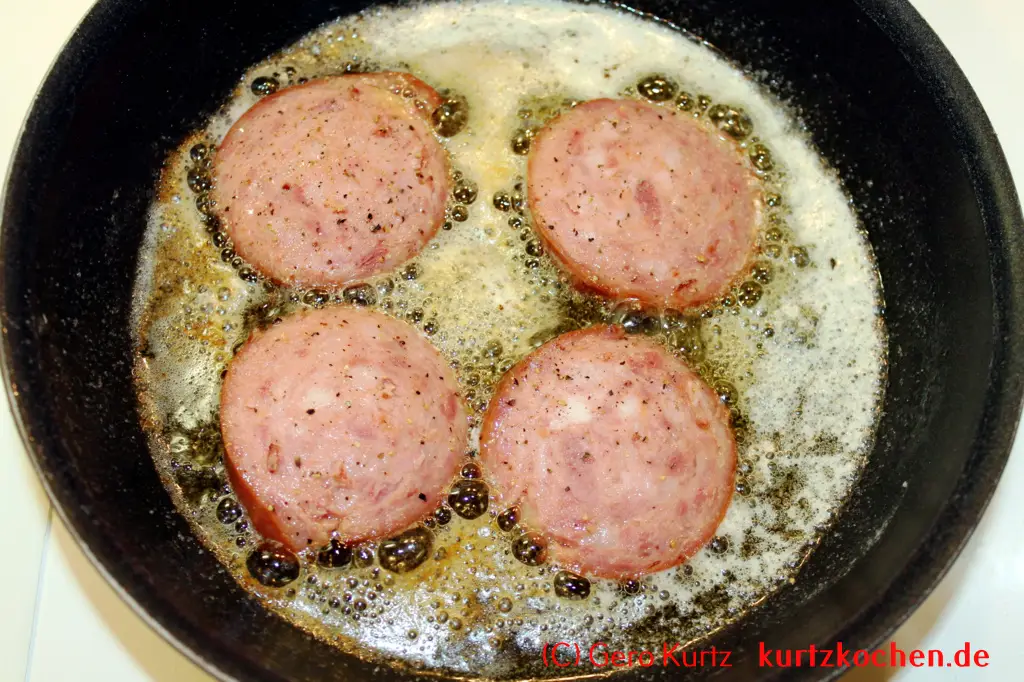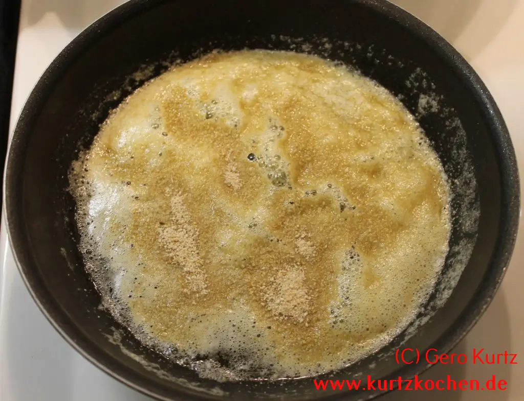 Nach etwa 15 Minuten nehmen wir eine Gabel und prüfen die Festigkeit des Spargels. Die Zinken sollten den Spargel ohne größeren Widerstand durchdringen können, falls nicht weiter kochen. Falls ja, die Spargel vorsichtig herausnehmen (Köpfe nicht beschädigen), abtropfen lassen, auf einen Teller geben und warm stellen (Backofen). Inzwischen in einer Pfanne Butter zerlassen und Semmelbrösel und Salz hinzugeben. Die Butter mit den Semmelbröseln schön braun werden lassen und dann heiß über die Spargel geben.