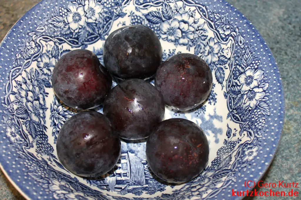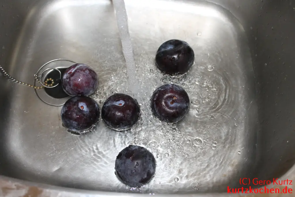 Dann waschen wir die Pflaumen gründlich mit Wasser ab.