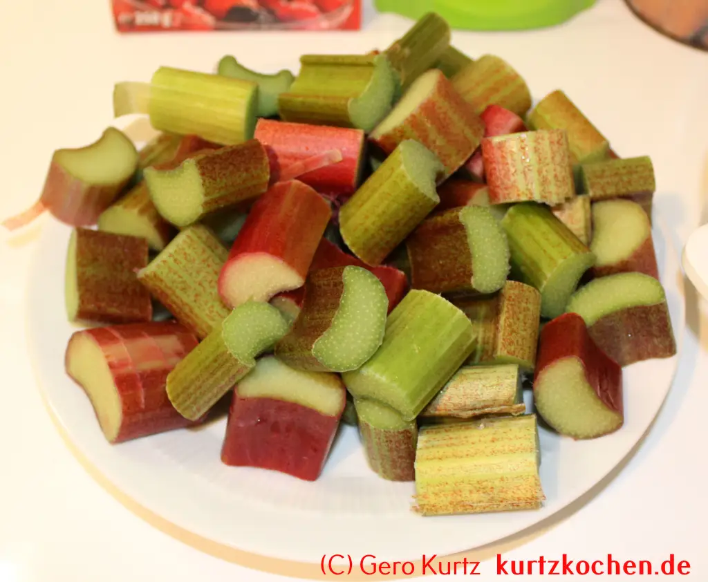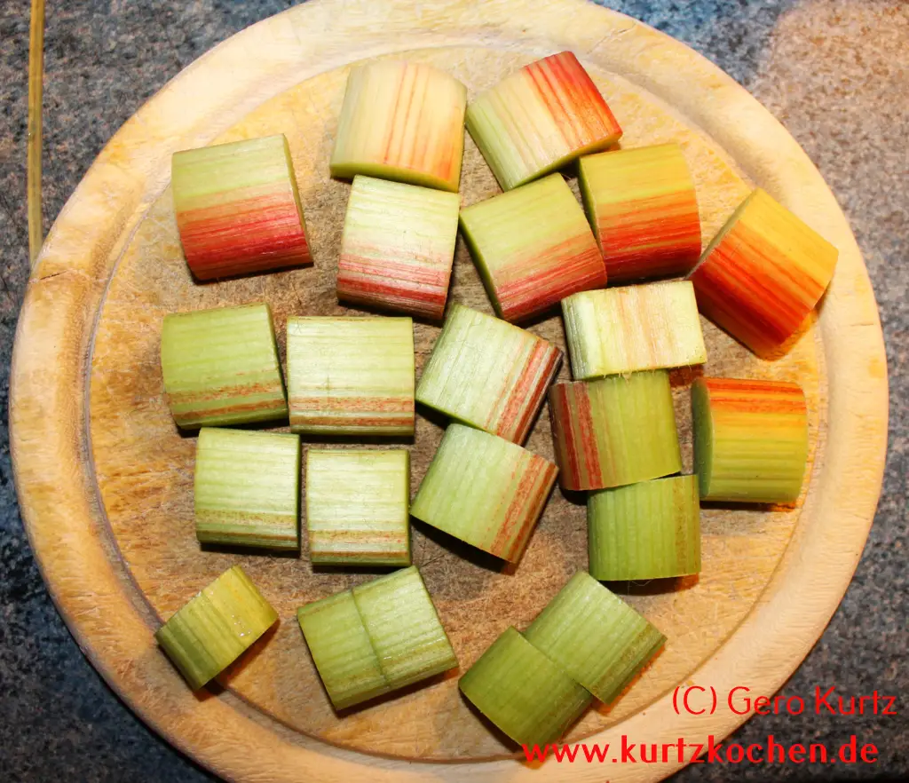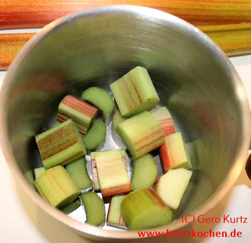 Anmerkung: Ein festes Rezept für Rhabarberkompott zu schreiben, ist nicht so ganz einfach. Der Rhabarber unterscheidet sich sehr stark hinsichtlich der Säure und des Geschmacks entsprechend der Sorte, dem Zeitpunkt der Ernte und dem Standort plus den Wuchsbedingungen. Bei sehr jungem und rotem Rhabarber benötigen sie nur wenig Wasser und auch nur wenig Zucker. Bei im Juni geerntetem grünem Rhabarber benötigen Sie mehr Wasser und Zucker, da er zu diesem Zeitpunkt schon sehr sauer ist. Probiere es einfach aus.