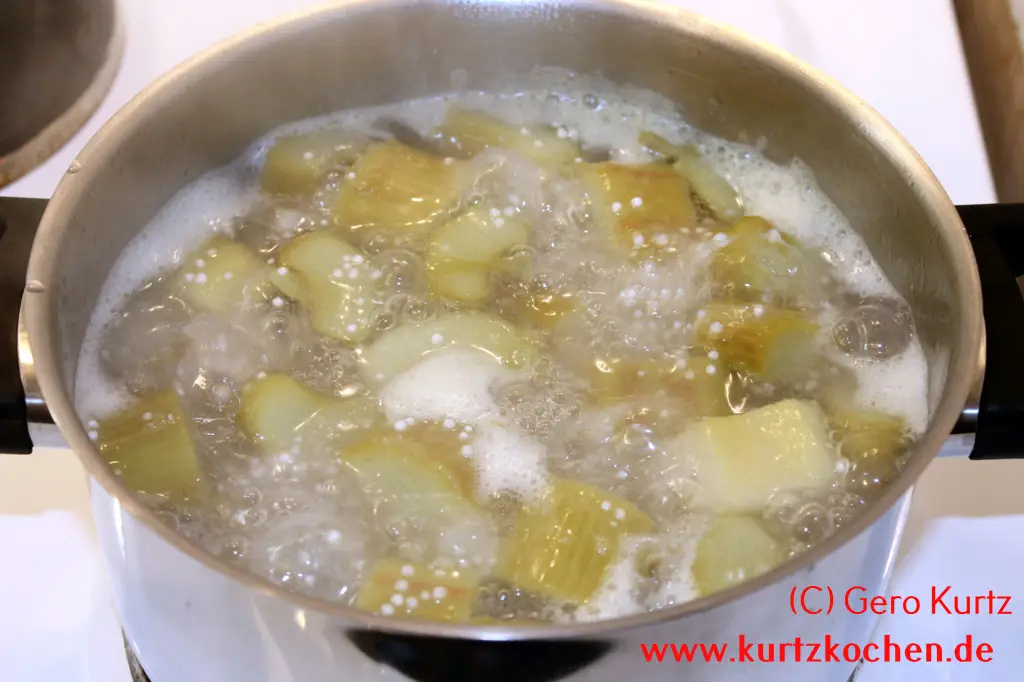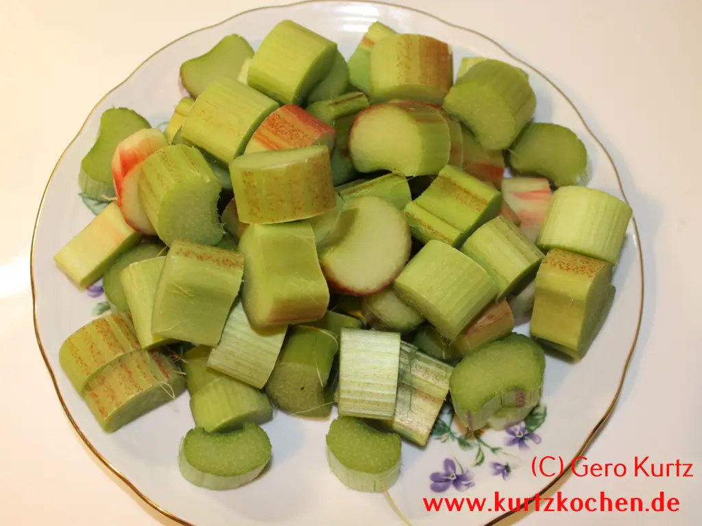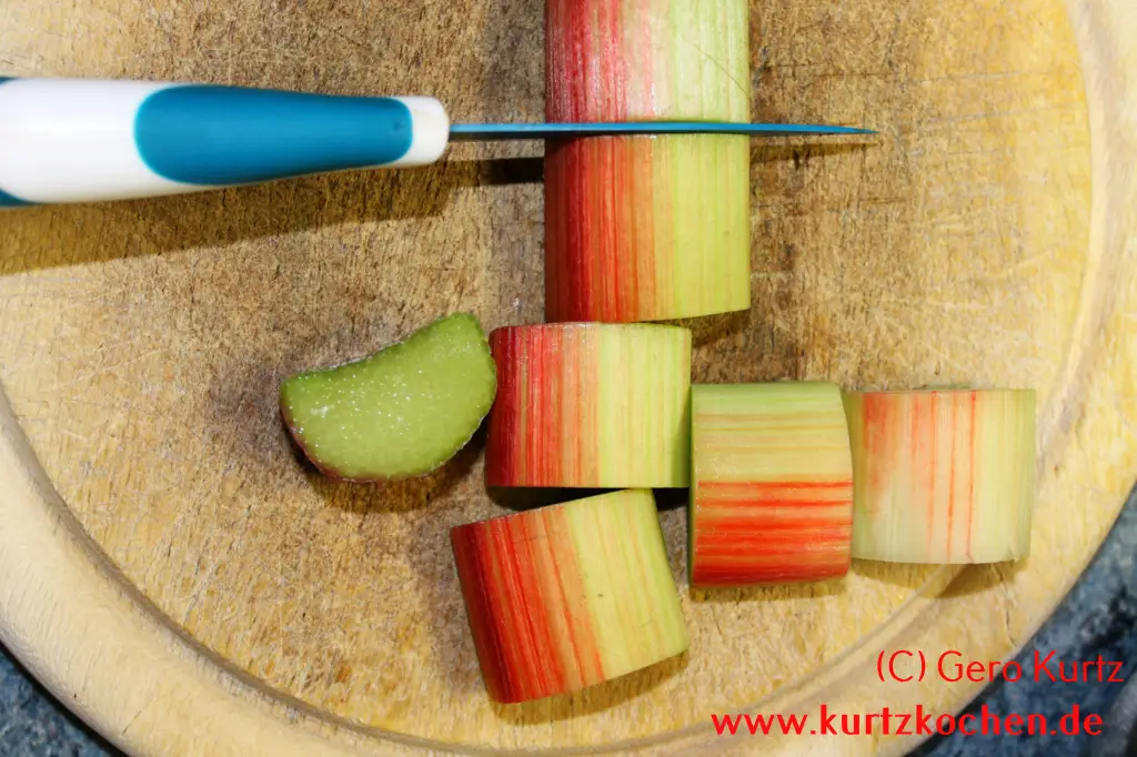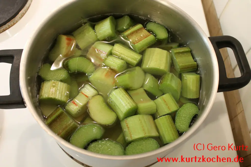 Verarbeitung des Rhabarbers zu Rhabarberkompott:
