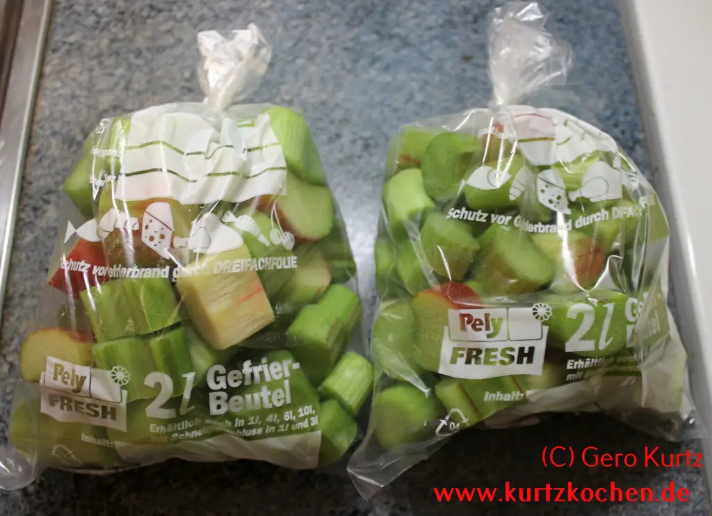 Falls doch größere Mengen anfallen, dann kannst Du den Rhabarber auch gut einfrieren. Am besten vorher abziehen und in Stücke schneiden.