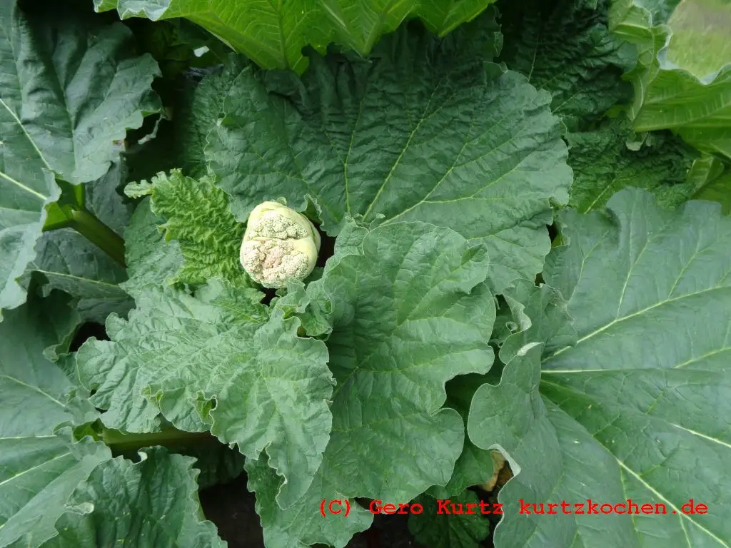 Sollte sich eine Blüte bilden, so ist diese zu entfernen! Dazu diese einfach herausbrechen. Das ist notwendig, da der Rhabarber sonst einfach in die Höhe wächst und keine Blätter mehr bildet. Er gibt seine gesamte Kraft in die Blütenbildung.