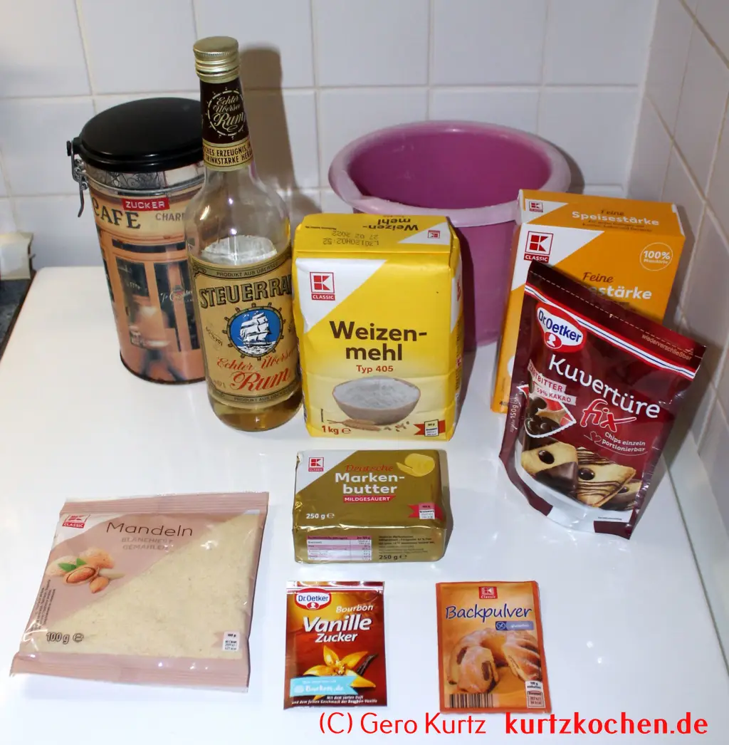 Nun 62 Gramm gemahlene Mandeln und 5 ml Rum dazu geben.