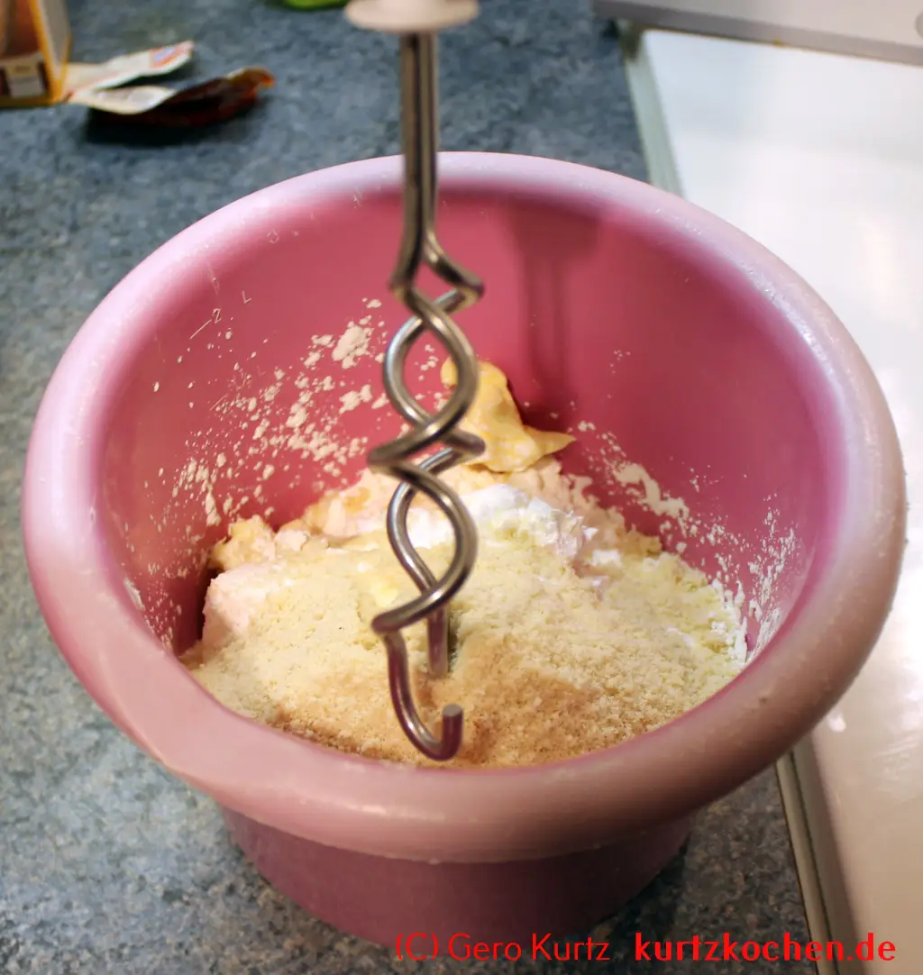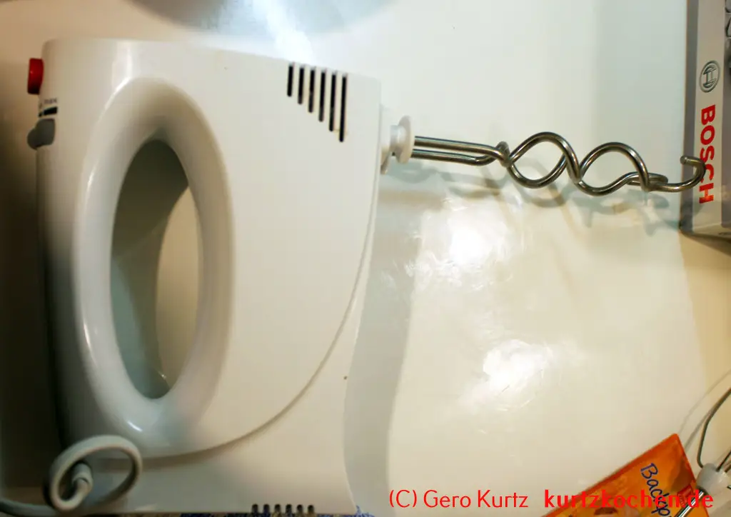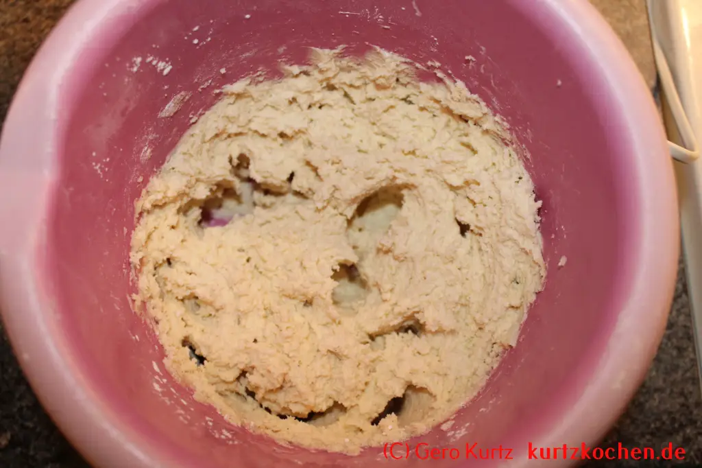Jetzt den Teig gründlich mit dem Knethaken durchmischen.