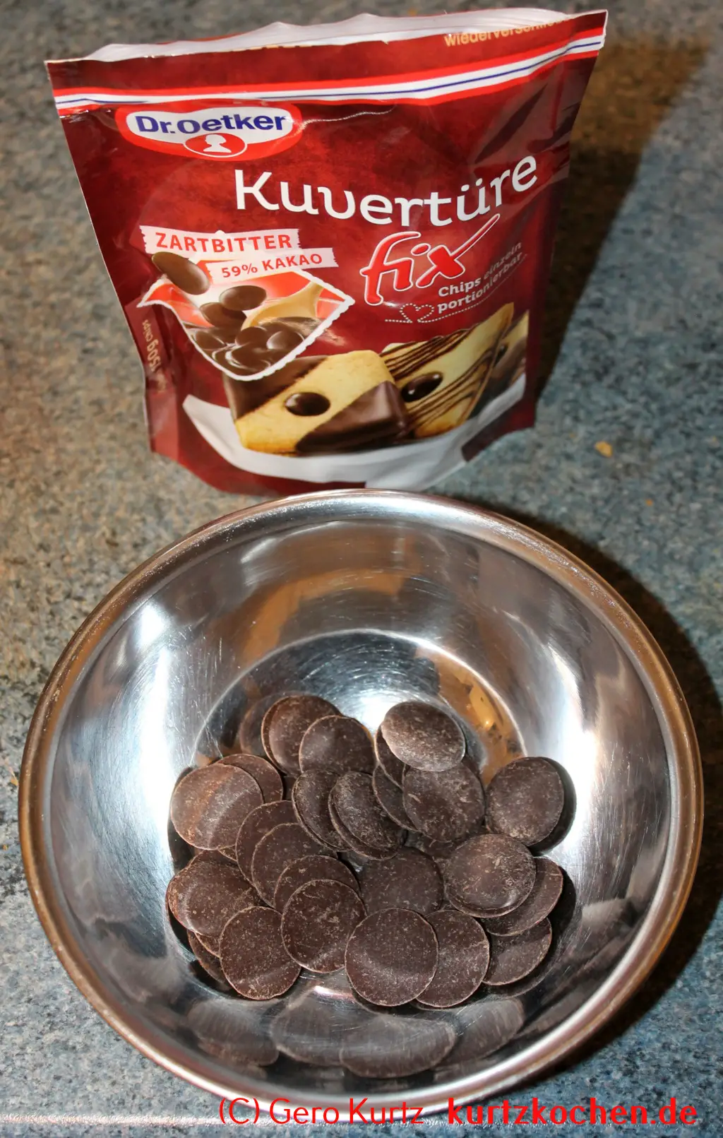 Ein Teil Kuvertüre aus der Verpackung nehmen und in eine Schüssel geben.