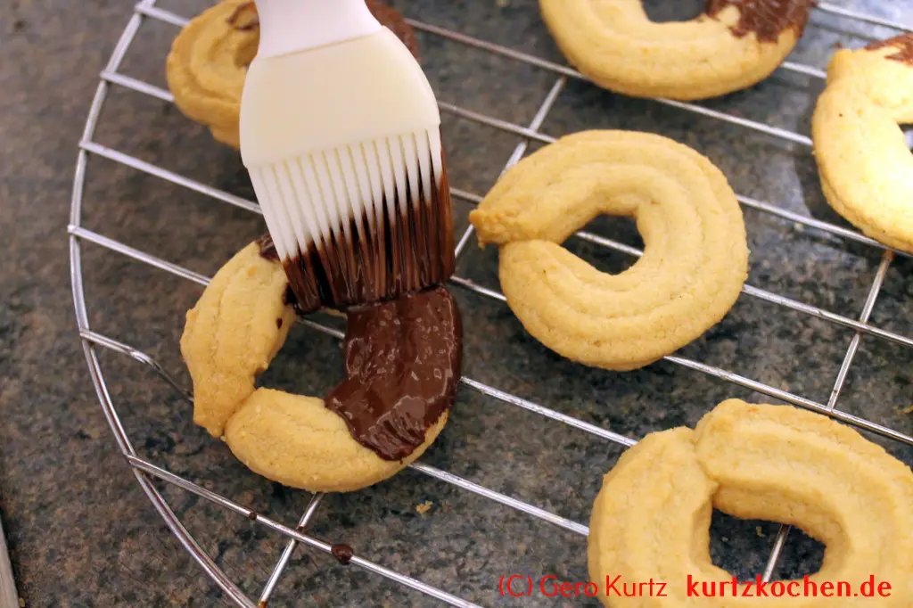 Sollen die Kekse noch einen Schokoladenüberzug erhalten, dann geht es wie folgt weiter:
