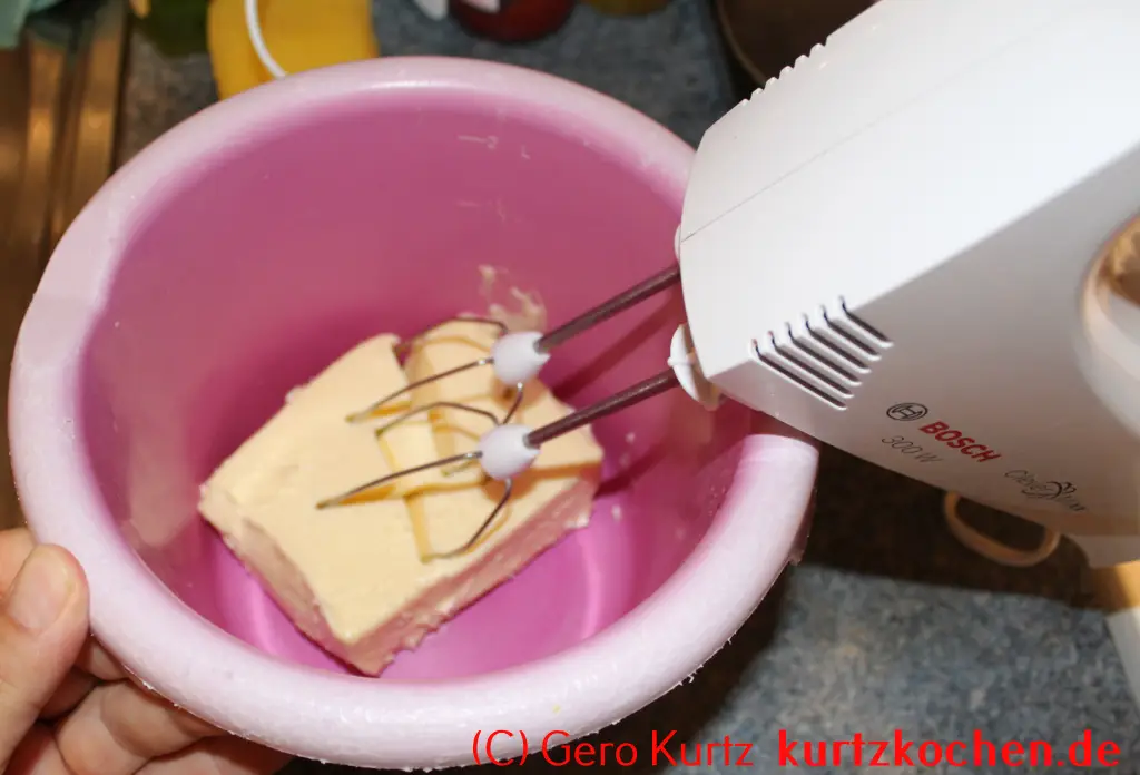 Nun die Butter so lange schlagen, bis sie cremig wird.