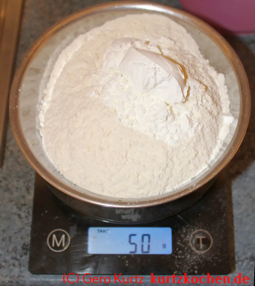 - 50 g Feine Speisestärke, dann nur 350 Gramm Mehl