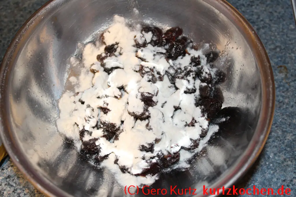 Der Gugelhupf von Dr. Oetker schmeckt noch besser, wenn man ihn mit Rosinen und/oder Orangeat/Zitronat verfeinert. Dazu vor Beginn der Backarbeiten eine Handvoll Rosinen mit Wasser gründlich waschen und mit einem Küchentuch trocken tupfen. Wer es mag, die Rosinen mit ein wenig Rum eine Stunde lang einlegen. Danach abtropfen lassen und in Mehl wälzen. Das Mehl verhindert, dass die Rosinen nach unten sinken.