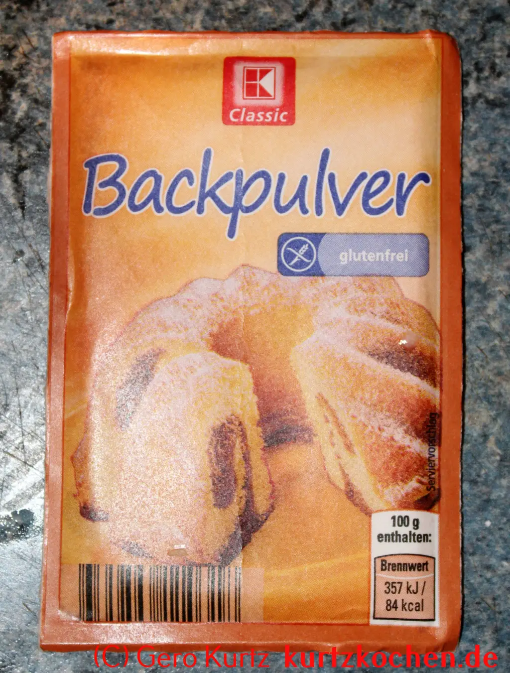 Backpulver hat die Angewohnheit, Krümel zu bilden. Daher die Tüte Packpulver in das Sieb geben und mit den Fingern in den Kuchenteig reiben. Dann alles gut unterrühren.