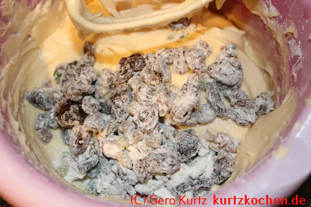 Optional den Gugelhupf mit Rosinen und Zitronat/Orangeat verfeinern: