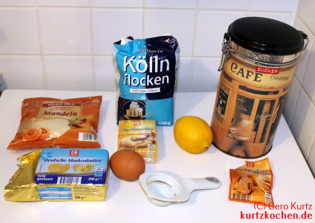 Benötigte Zutaten für Köllnflocken-Plätzchen: