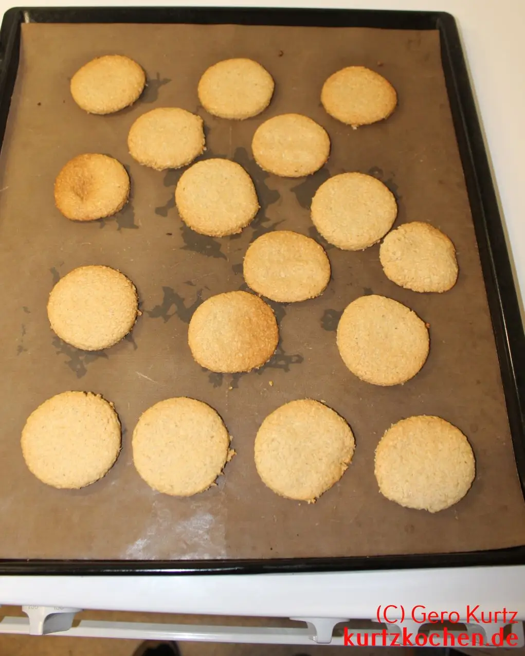 Nach dem Herausholen aus dem Backofen die Kekse zum Auskühlen auf ein Gitter legen.