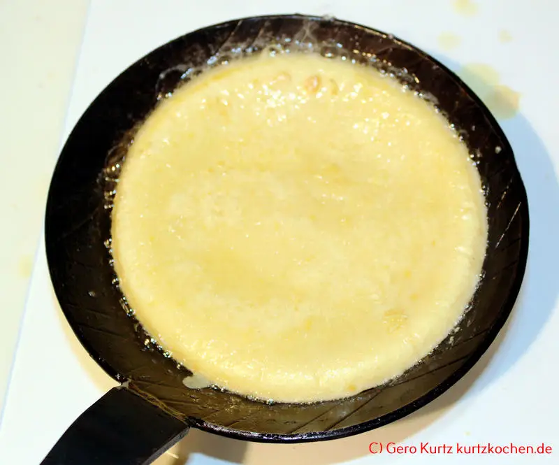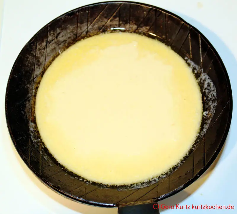 Eierkuchen in der unbeschichteten Pfanne aus Gusseisen zubereiten: